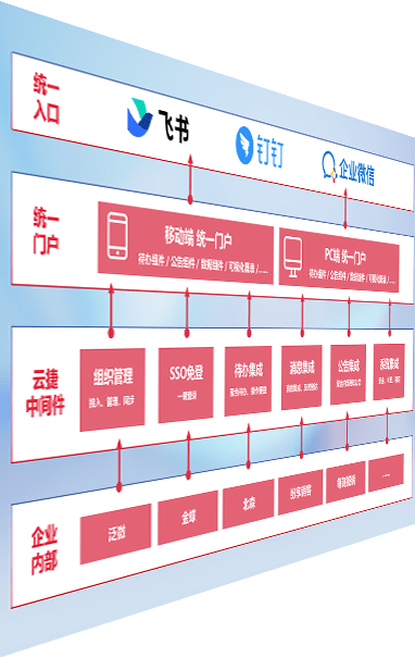 对协作平台提供支持服务,,,,支持企业应用与协作平台对接,,,包含组织同步、、消息集成、、、、待办集成等。。。支持目前主流的协作平台:钉钉、、、企微和飞书。。